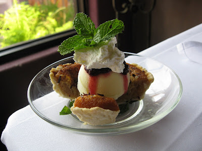 Everything about this pastoral, eco-friendly hideaway made for a very memorable time for us. The ONLY downside was that we couldn't stay longer. Upon arriving we decided to thoroughly check the place out. Here is a glimpse of what we found: The Canebrake uses natural, organic and locally sourced foods whenever feasible. The kitchen recycles and uses their cooking oil to create bio-diesel fuel. Their menu changes seasonally and its offerings include vegetarian fare, (including a few raw friendly dishes which may expand over time), organic Oklahoma raised Bison, hook caught and sustainable seafood, and everything is made from scratch. I don't have to tell you that this Real Food girl felt right at home. When the sous chef, Danny Savale , came to our table to check on our dining experience, I told him that I had officially arrived at the pearly gates of culinary heaven! Our dinner began with a tropical, seasonal fruit amanse (I have no idea how to spell this) to cleanse and prepare our palates for dinner. (YES!) This delicious fruit salsa contained fresh pineapple, melon, red bell pepper, red onion, jalapeno and was served with tri-color corn chips. Since it was our anniversary and because Thursday evenings are half price wine night at the Canebrake, we decided to live it up. I ordered a split of Veuve Clicquot and Gordon ordered a bottle of a delicious, cellar cooled Petite Sirah from Napa Valley - Pennywise. My dinner: Locally harvested and Biodynamic Salad with tomatoes, strawberries, red onion and bell pepper with a creamy miso ginger dressing. And yes, I got off the raw food train for my entree, but I have zero regrets! The Eggplant Parmesan was a masterpiece. Pan fried Parmesan & Asiago cheeses encrusted local eggplant, accompanied by a fresh house marinara, served over a bed of seasonal, very lightly steamed vegetables, sage, pearl onions and a wee bit of spinach fettuccine. This dish made me want to cry it was so good.Gordon's dinner: My beloved carnivore began with a Fried Oyster Jubilee. Cornmeal & dill breaded Gulf oysters were served with a house remoulade sauce over a traditional Caesar presentation. His entree was Kobe beef, seared and served over seasonal lightly sauteed vegetables and pommes frites. Gordon said the pan gravy reduction brought it all together for an orgasmic taste sensation. And if all of this food debauchery wasn't enough, our delightful server, Joy Harrel , tempted us with the best dessert menu I've ever seen. Gordon had a Rhubarb Phyllo Crisp with homemade ginger ice cream. There were no words, only moaning as he finished the last bite. And feeling a bit embarrassed by my evening's gluttony, I opted for a scoop of Lemon Verbena Sorbet. It was insanely good. The restaurant is open Wednesday through Saturday for dinner from 5:30 - 9 pm (and lunch if you are a guest). And also for the much touted Sunday Brunch from 10 am - 2 pm. Reservation are recommended. (918) 485-1807. Besides being a heavenly retreat for a hard core, healthy foodie...The Canebrake was also built with sustainable construction methods, has geothermal heat & air, solar hot water, recycled insulation, shredded denim insulation, low wattage halogen and compact fluorescent lighting, American clay plaster walls, and it contains no volatile organic compounds. Gordon with Lisa, the main Yogini & co-owner of The Canebrake Their Eco-Chic Boutique offers organic cotton, bamboo and hemp clothing & accessories. Handmade purses, glassware, jewelry and hats along with yoga props, fair trade organic chocolates (I gotta get them selling raw chocolate!!) and organic beauty products and candles were just some of what made this such a hip little shop. To order on of their Okie Yogi/Namaste Ya'll Tee's just give them a call! Next time we visit, we're each planning to schedule one of their fabulous massages. The Deer View building houses both couples and individual massage rooms; offering Sweedish, Hot Stone or Deep tissue bodywork. As a guest at the Canebrake you can do as we did and simply unplug from the Matrix. We attended two classes in the unbelievable Yoga Barn which offers daily classes to their guests and the local community. There is also 5 miles of hiking trails (LOVED!).... .....or you can play in the "Adult Sandbox." This retreat facility appeals to the individual as well as those planning an event for their organization or company. The Ropes Course looked very intriguing to me. Very nearby there is also golf horseback riding, shopping, and fishing/boating on Ft. Gibson Lake. I could go on and on about the rest of our stay, but I would really like for you to simply experience the Canebrake for yourself. Check them out on the web or you can follow them on Twitter . Whatever you want, they will do for you....it's totally my kind of place. Big props to Adam (who actually recognized me from my blog when we arrived), Chelsea, Kristie, Joy, Tracy, Danny, Curt, and Sam & Lisa Bracken, the owners. You guys rocked our world (and made us feel like rock stars).We can't wait to come visit you all again soon, Ya' hear?!